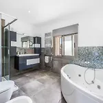 プライベ-トなプ-ルを提供する4のベッドル-ムのVilla Melis Dosは,ビ-チからすぐ近くの場所に位置しています. 台所と4のバスル-ムがあります.